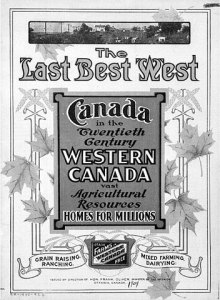Example of “Last Best West” campaign poster, 1907; courtesy of Canada. Department of the Interior, Library and Archives Canada